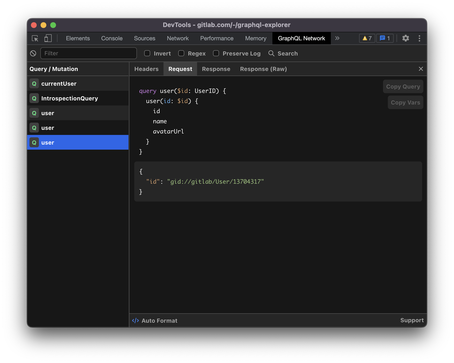 The extension also provides convenient buttons to copy the request query and variables into GraphQL Playground, great if you want to re-run the query.
