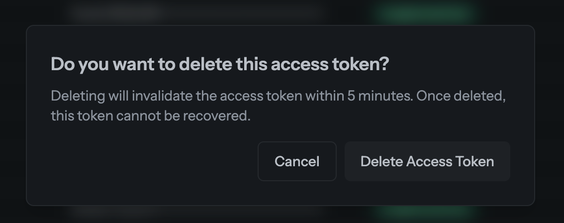 Confirm the Delete Access Token within the dialog.